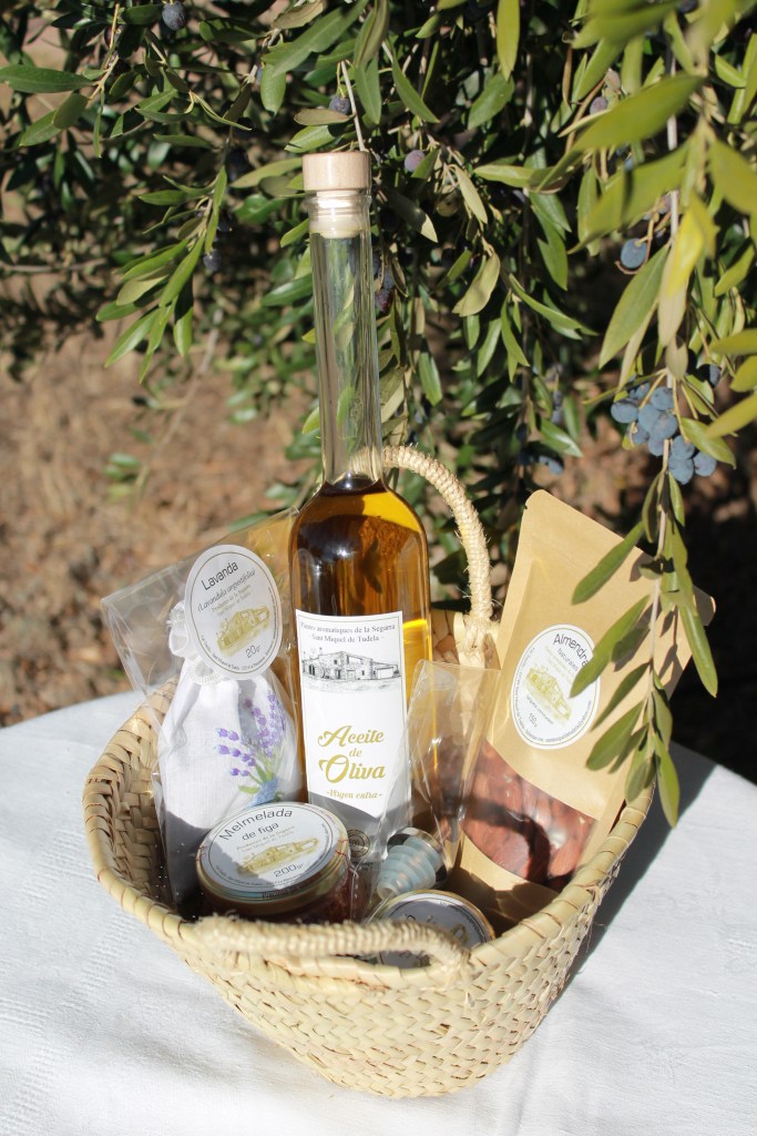 Description: 500 ml bottle of olive oil including pouring spout, 150 g pouch of pralines, 250 g glass jar of jam to be selected.